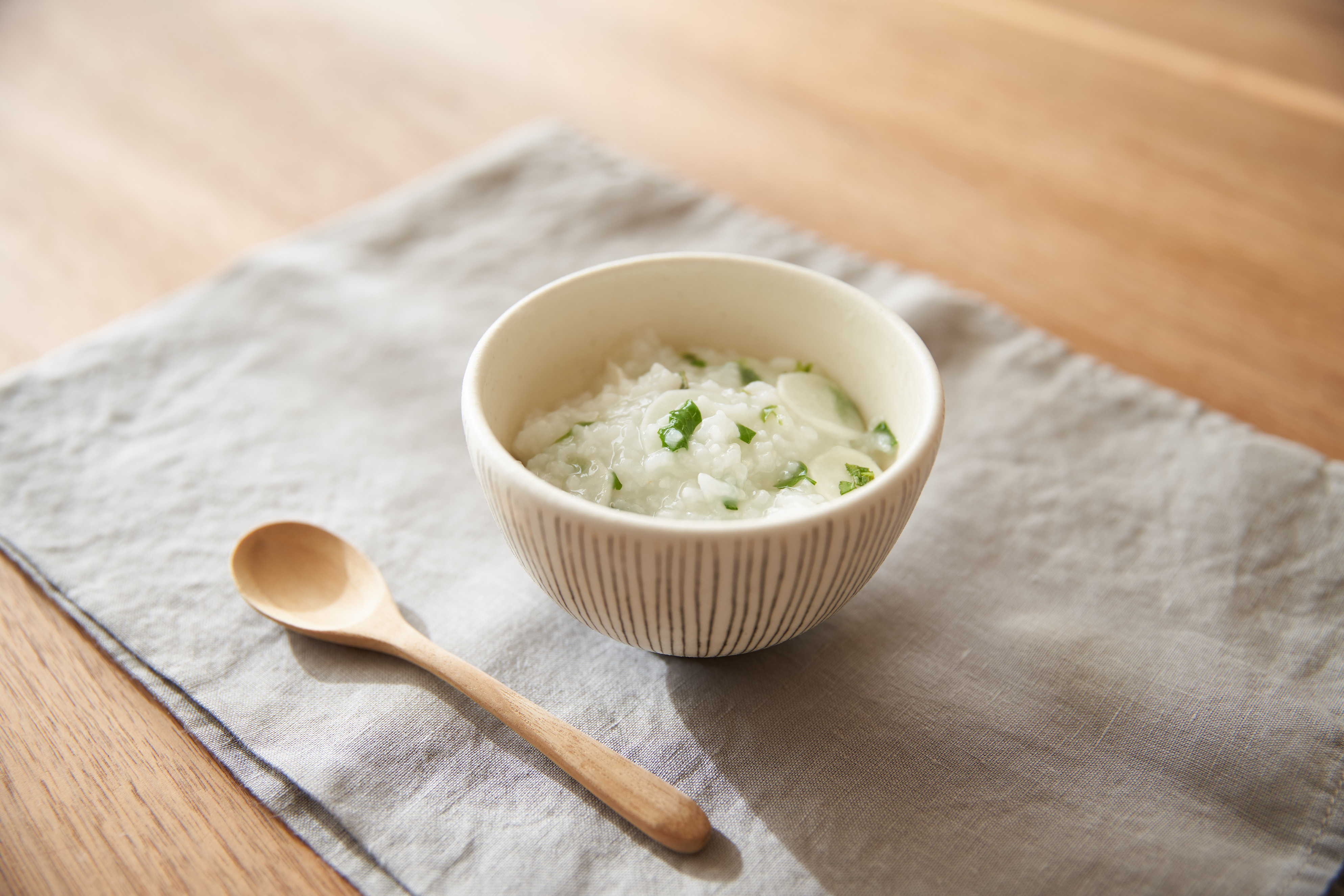 おかゆが炊けたら、2を混ぜ込み、器に盛り付ける。