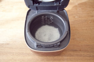 塩を入れて軽く混ぜ、おかゆモードで炊飯する。