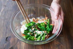 ボウルに白和え衣、菜の花、桜えびを入れてさっくりと和える。
