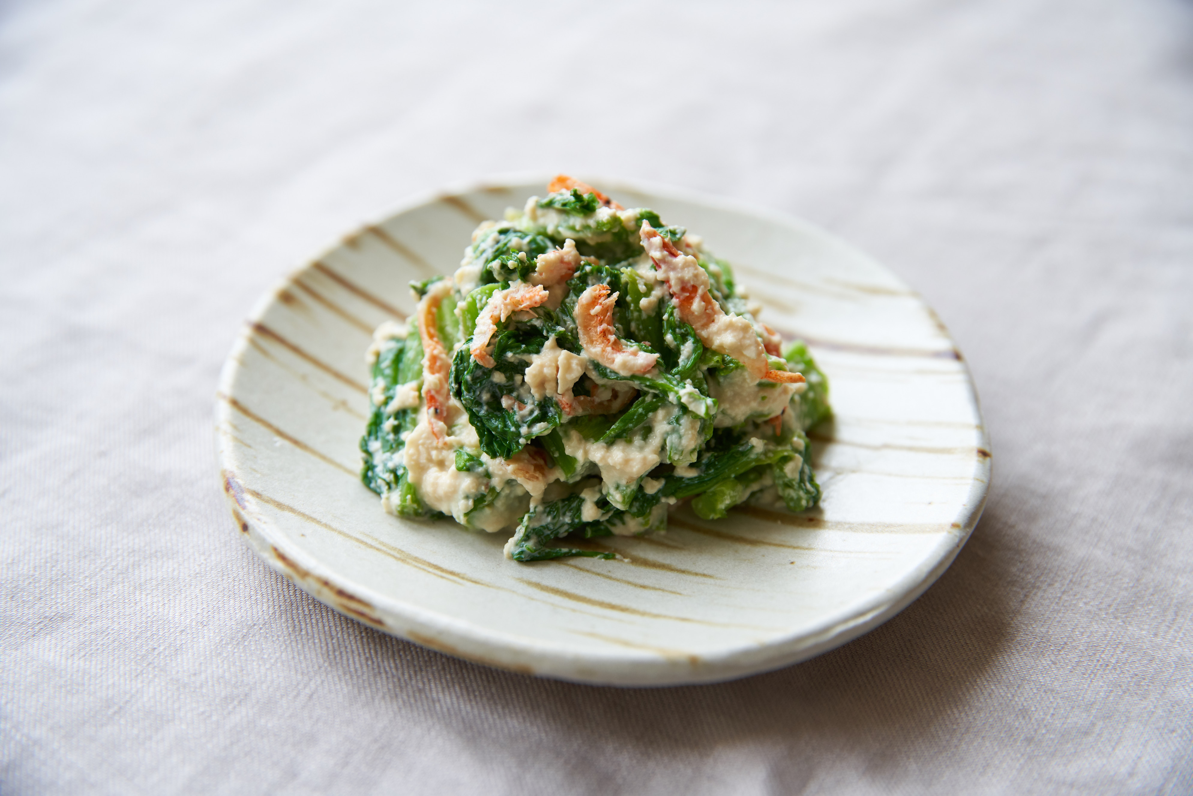 今回は、旬の菜の花と桜えびを使った白和えの作り方です。鮮やかな緑とピンクでお花見にもぴったりなおかず。