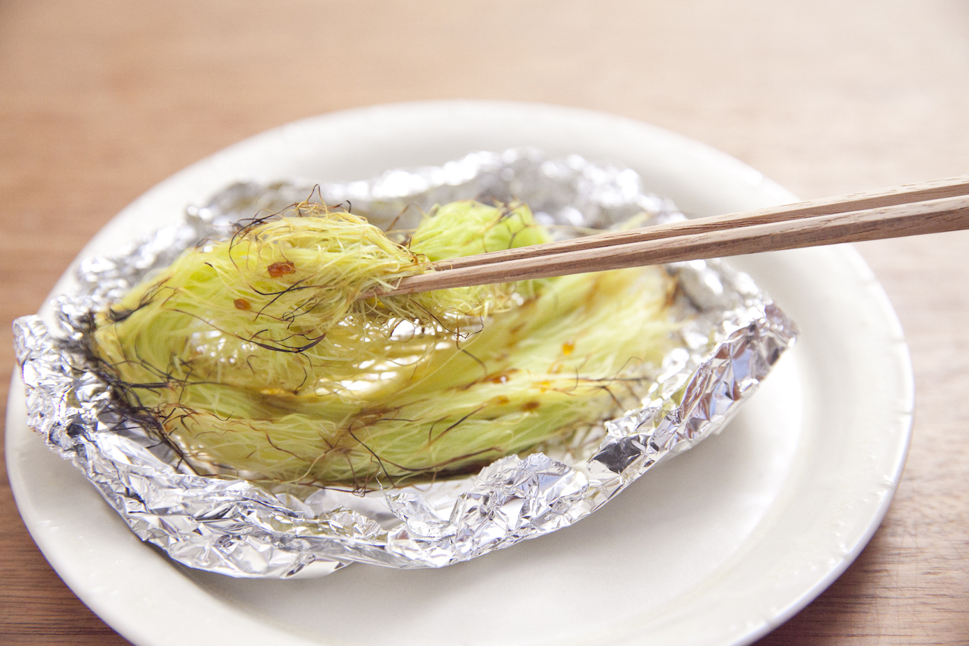 ●ヤングコーンのヒゲのホイル焼き