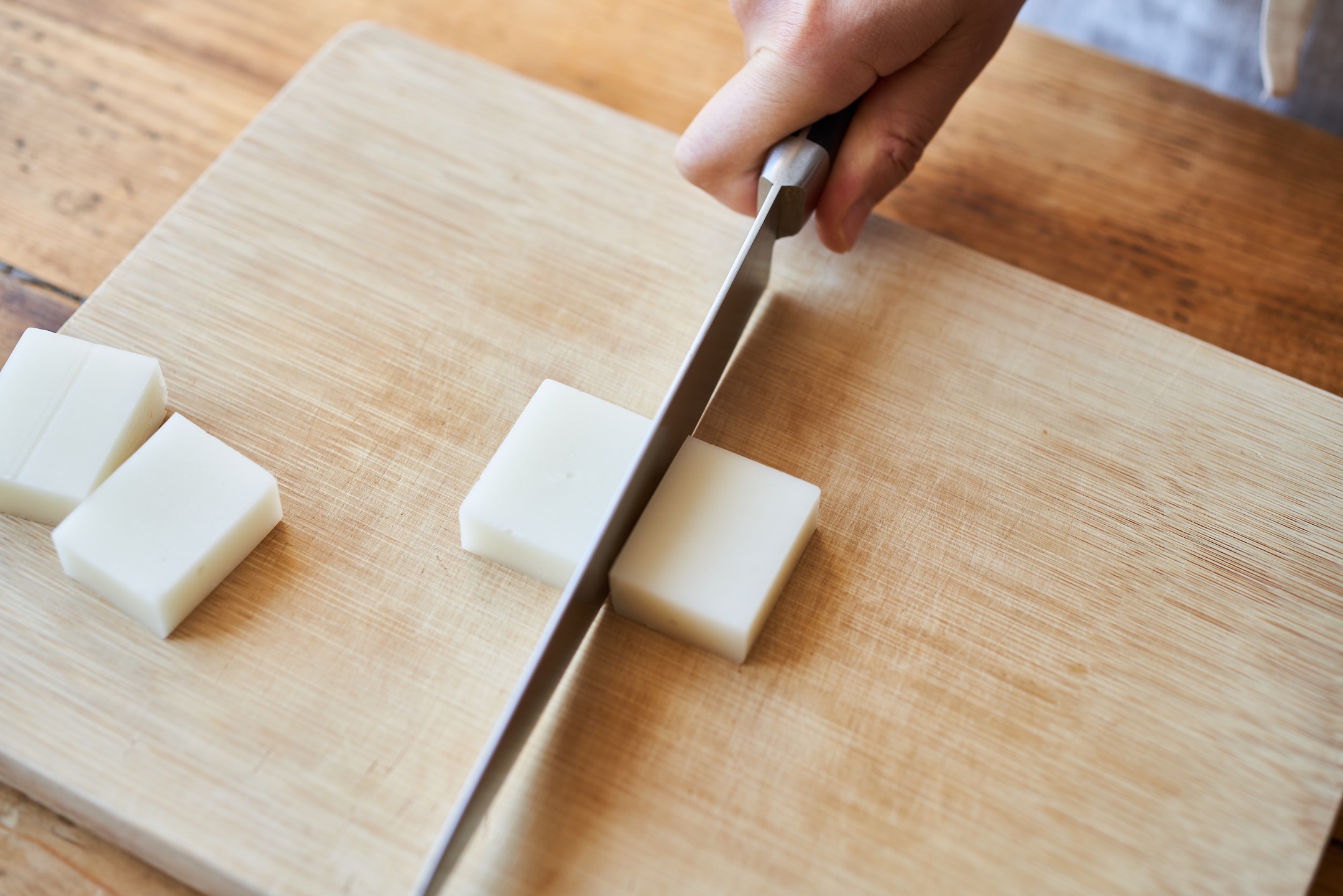 切り餅は半分に切る。