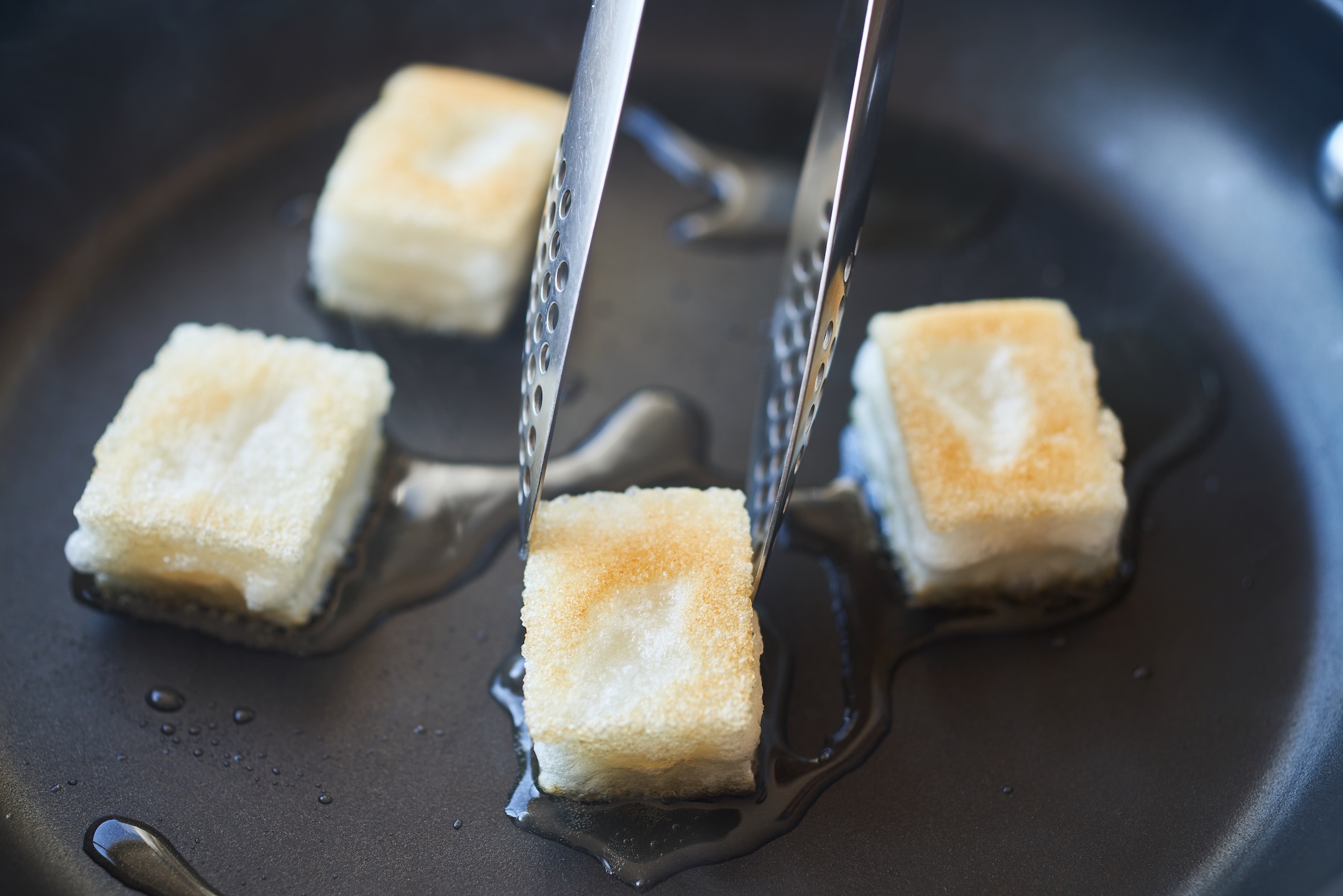 こんがりとするまで3分ほど、上下を返してさらに2〜3分ほど揚げ焼きにする。