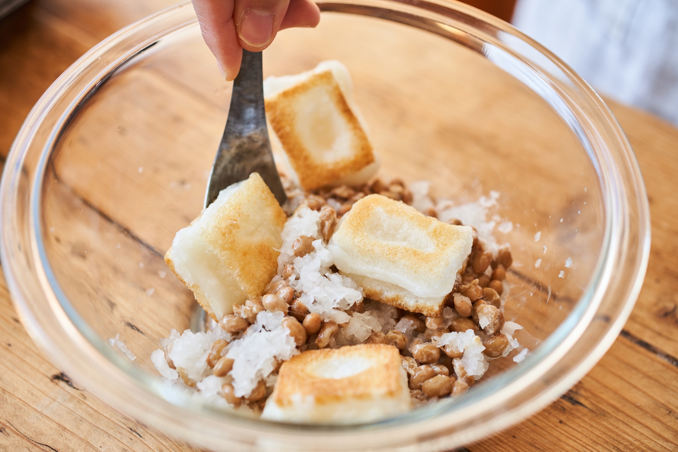 納豆、大根おろしを使ったお餅アレンジレシピ、「納豆からみ餅」のレシピです。