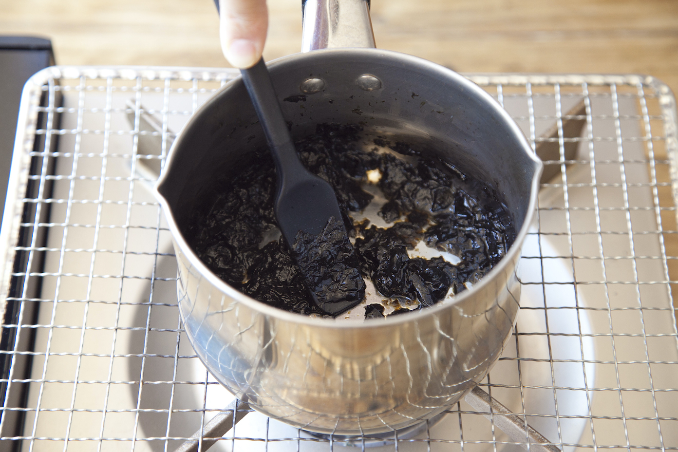 弱火にかけ、混ぜながら水分がほとんどなくなるまで煮る。
