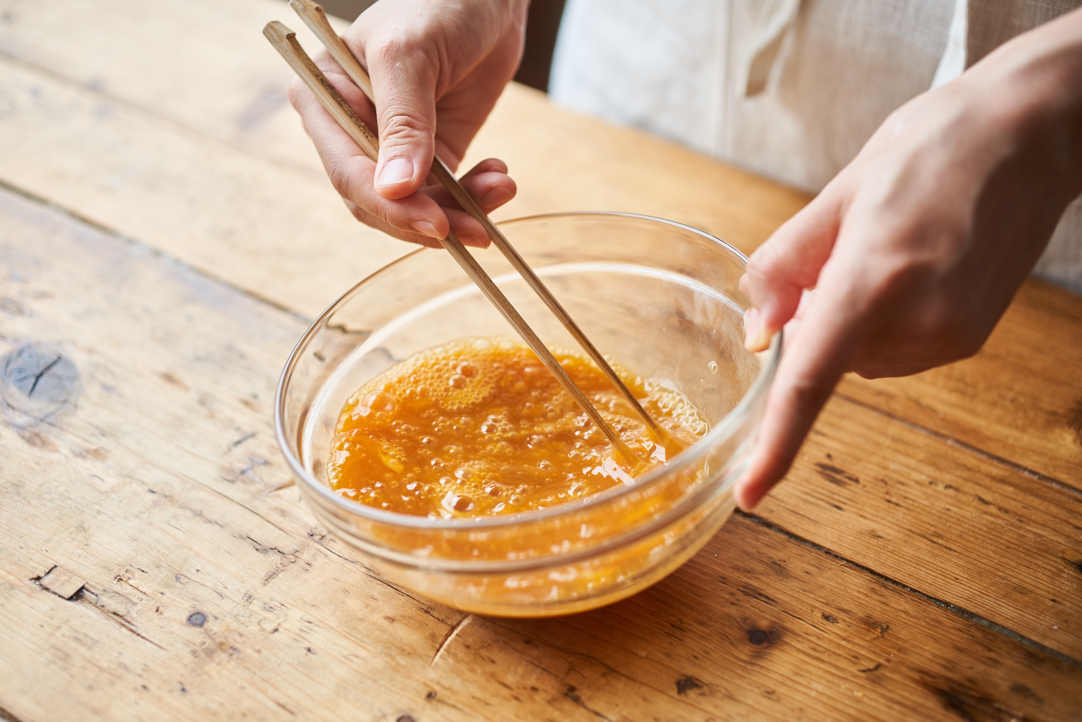 ボウルに卵を割りほぐし、(A)を加え混ぜる。