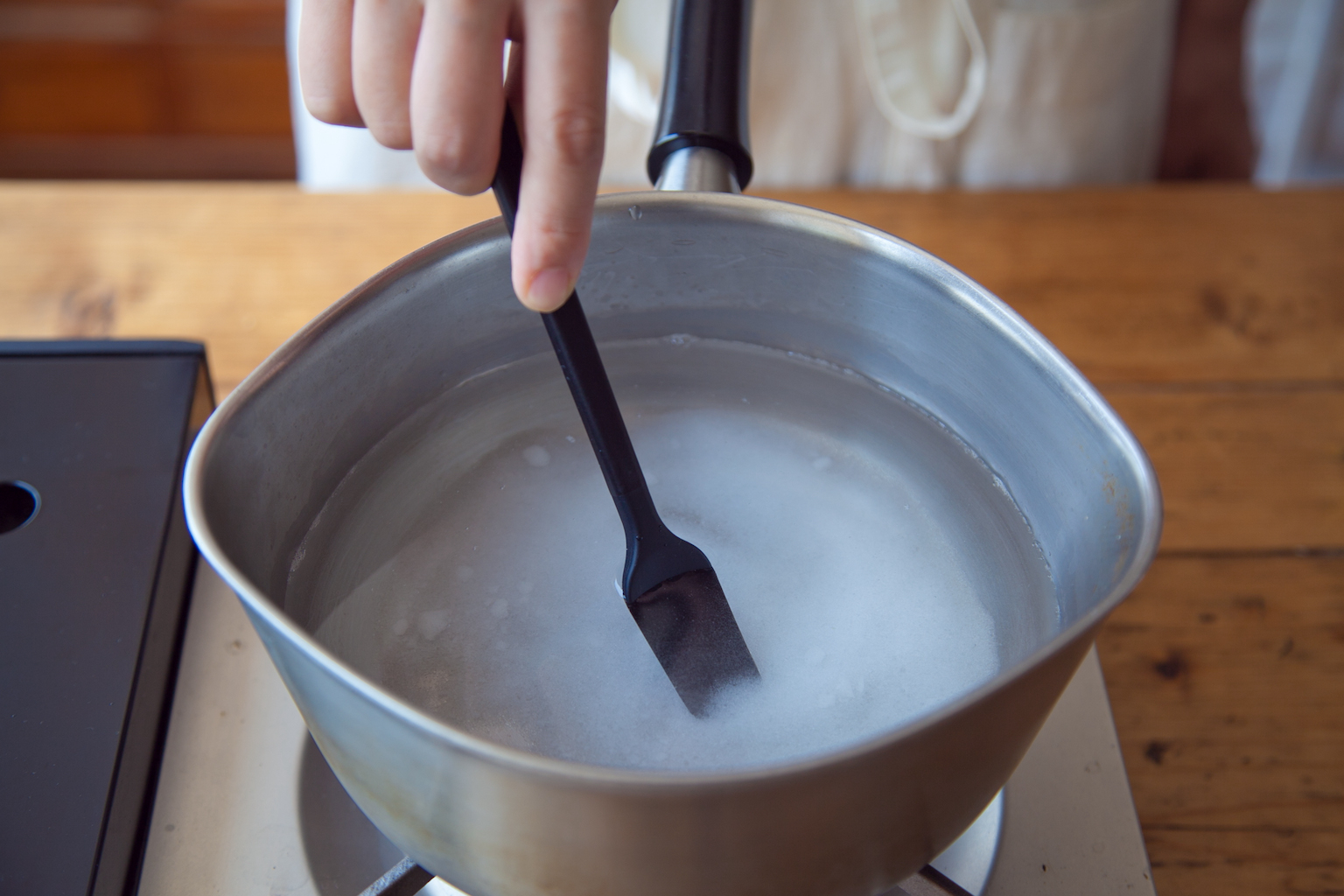 【1】鍋に水1リットル、塩を入れて混ぜながら火にかけ、一煮立ちして塩が溶けたら冷ます。
