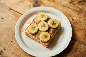 好みのパンにナッツバター、輪切りにしたバナナ各適量をのせ、