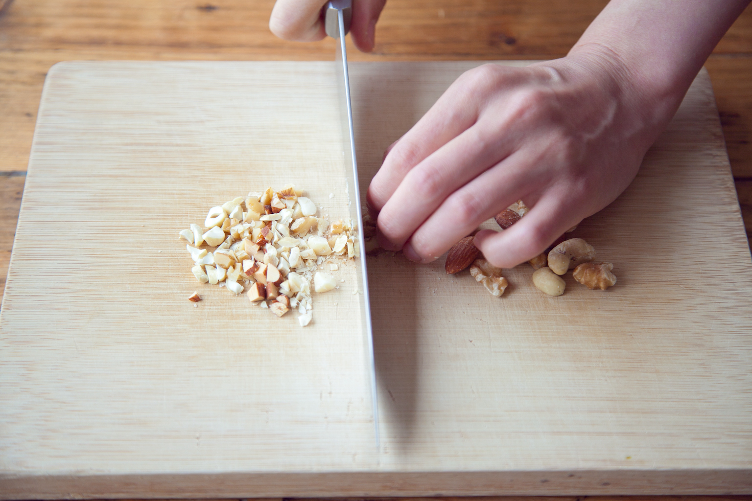 オーブンは170度に予熱する。ミックスナッツは刻む。