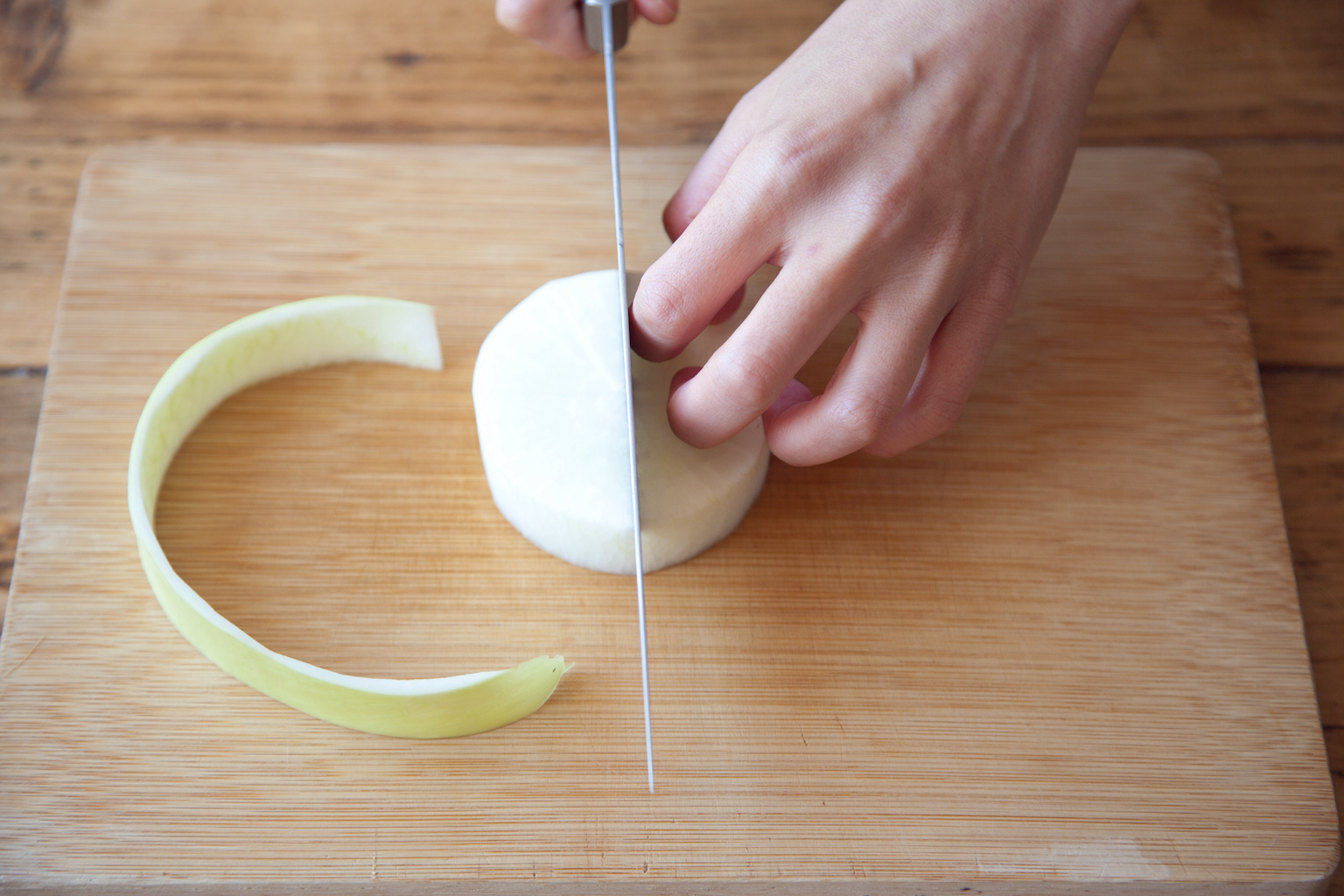 大根は2cm幅に切り、厚めに皮をむく。