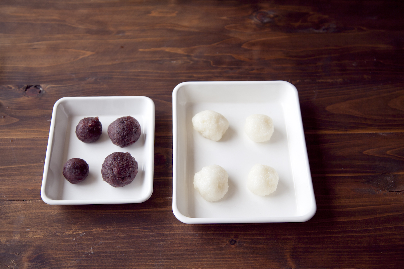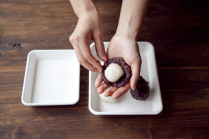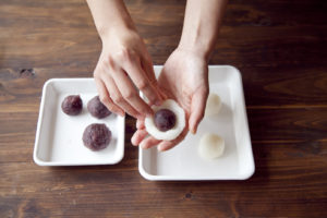 あんこのおはぎときなこのおはぎ、2種類が作れます。