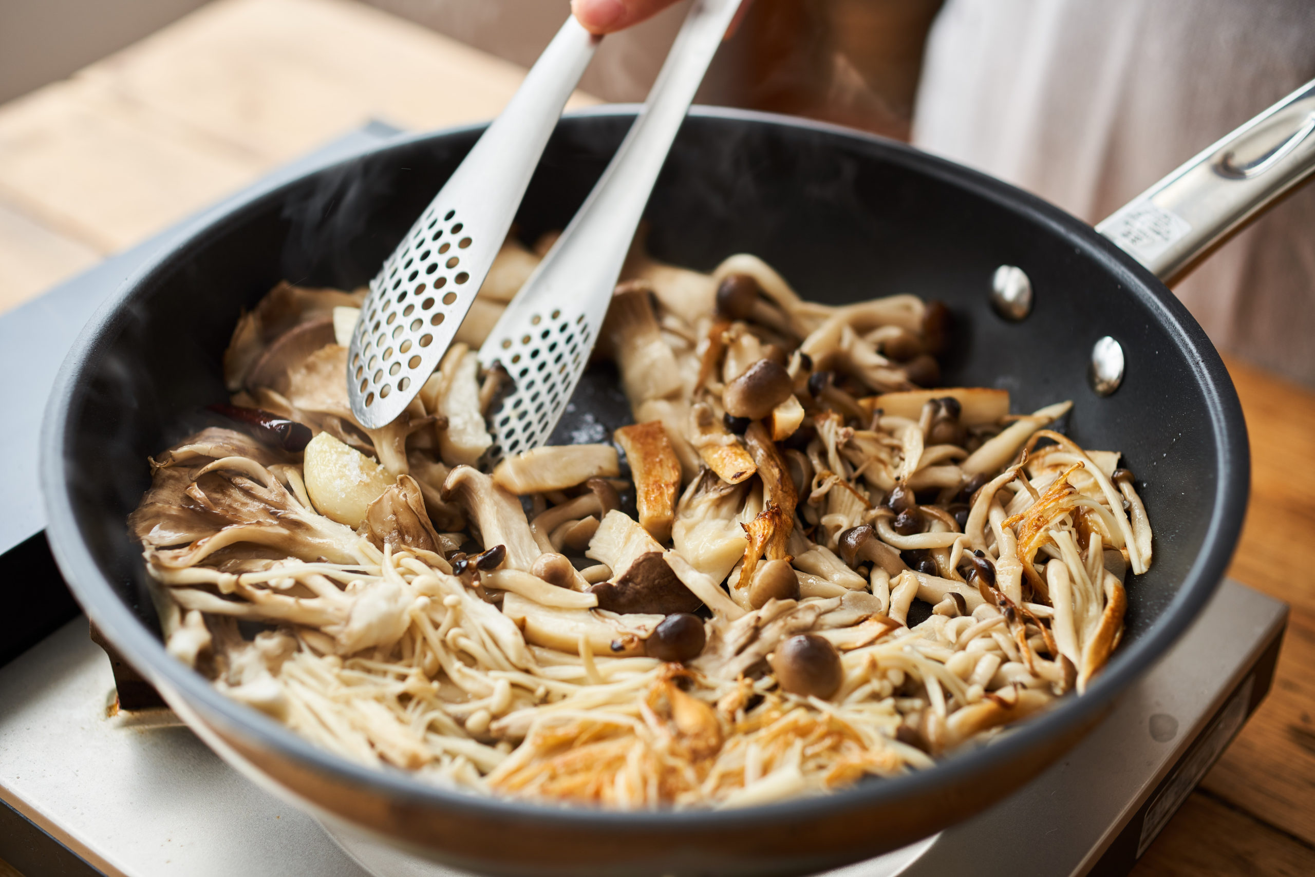 たっぷりきのこを使って、フライパンで作る簡単オイル煮の作り方です。