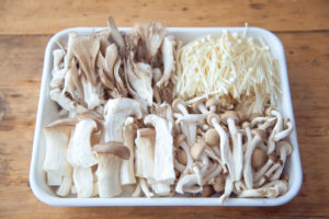 しめじ、えのきは石づきを落とし、食べやすい大きさにほぐす。