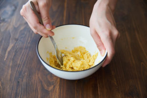 皮を取り除いて、熱いうちにマッシャーなどで潰す。