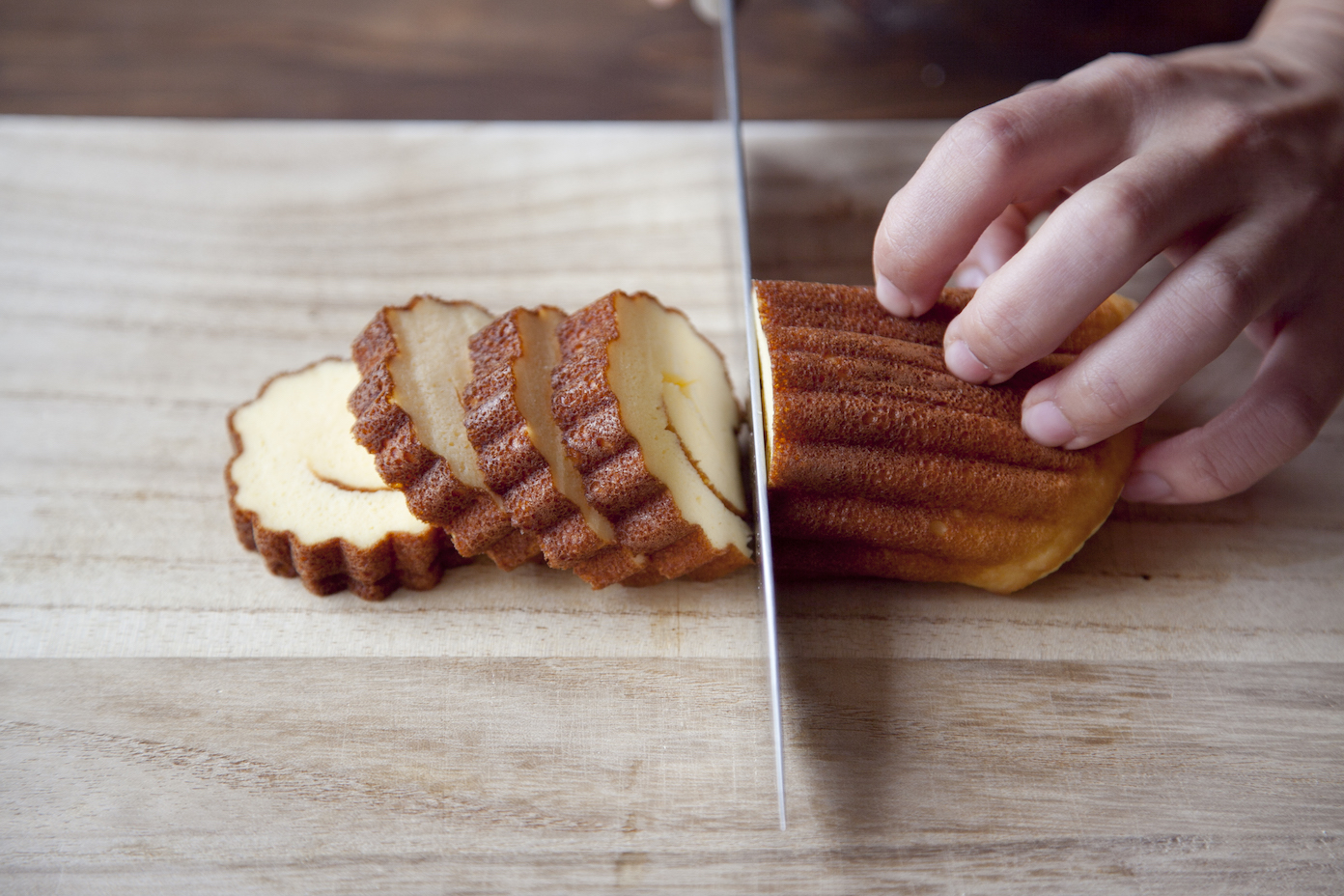 【4】輪ゴムで2ヶ所固定し、冷めるまでおき、切り分ける。
