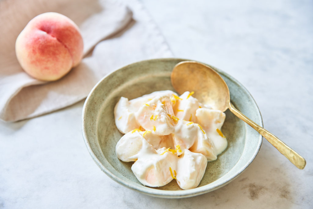 ジューシーな桃をクリームチーズを使った洋風の白和え衣と和えます。