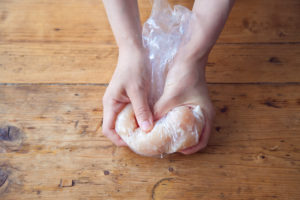 ささみはポリ袋に入れて塩麹を加えてもみ込み冷蔵庫で15分ほどおく。(時間があれば一晩おいても)