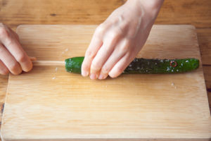 きゅうりを丸ごと1本、「きゅうりの一本漬け」の作り方です。