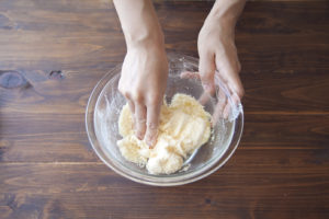 全体が均一になったらパルメザンチーズ、オリーブオイルを加え混ぜ、