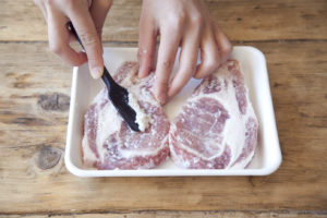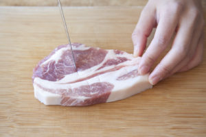 豚肉の筋を切り、袋に入れて 1 を加えなじませ、一晩冷蔵庫におく。