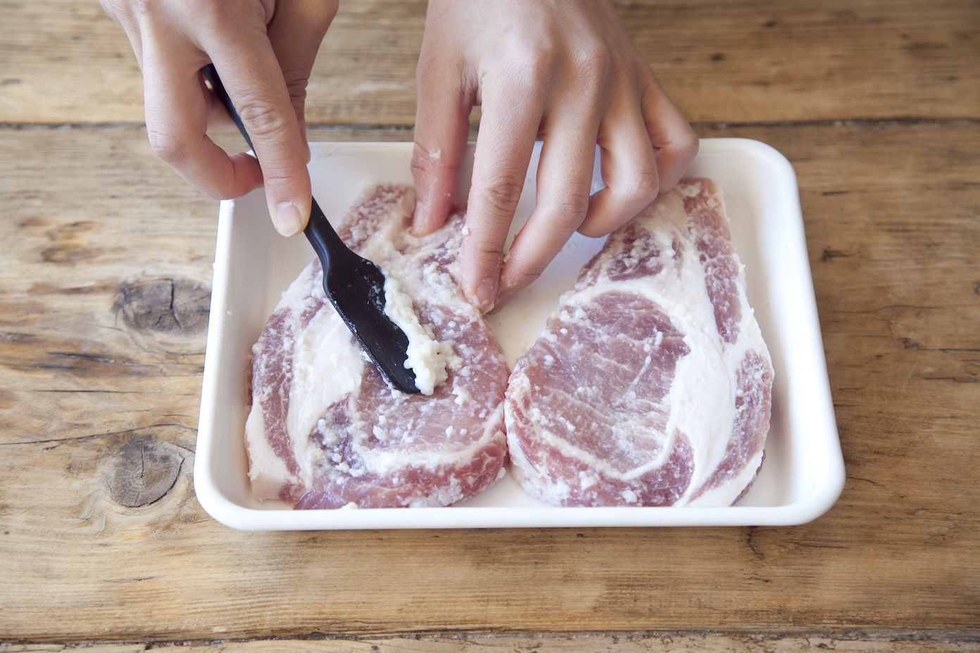 「豚肉の三五八漬け焼き」でぬぐった 358 大さじ1/2程度