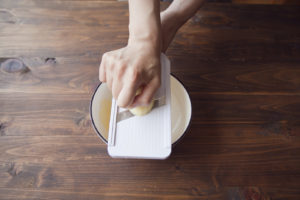 じゃがいもは皮をむき、スライサーでスライスし、