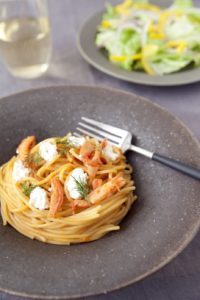 パスタをレンジで加熱してる間にサラダと白ワインを用意すれば、数分でご褒美ごはんができあがります…!