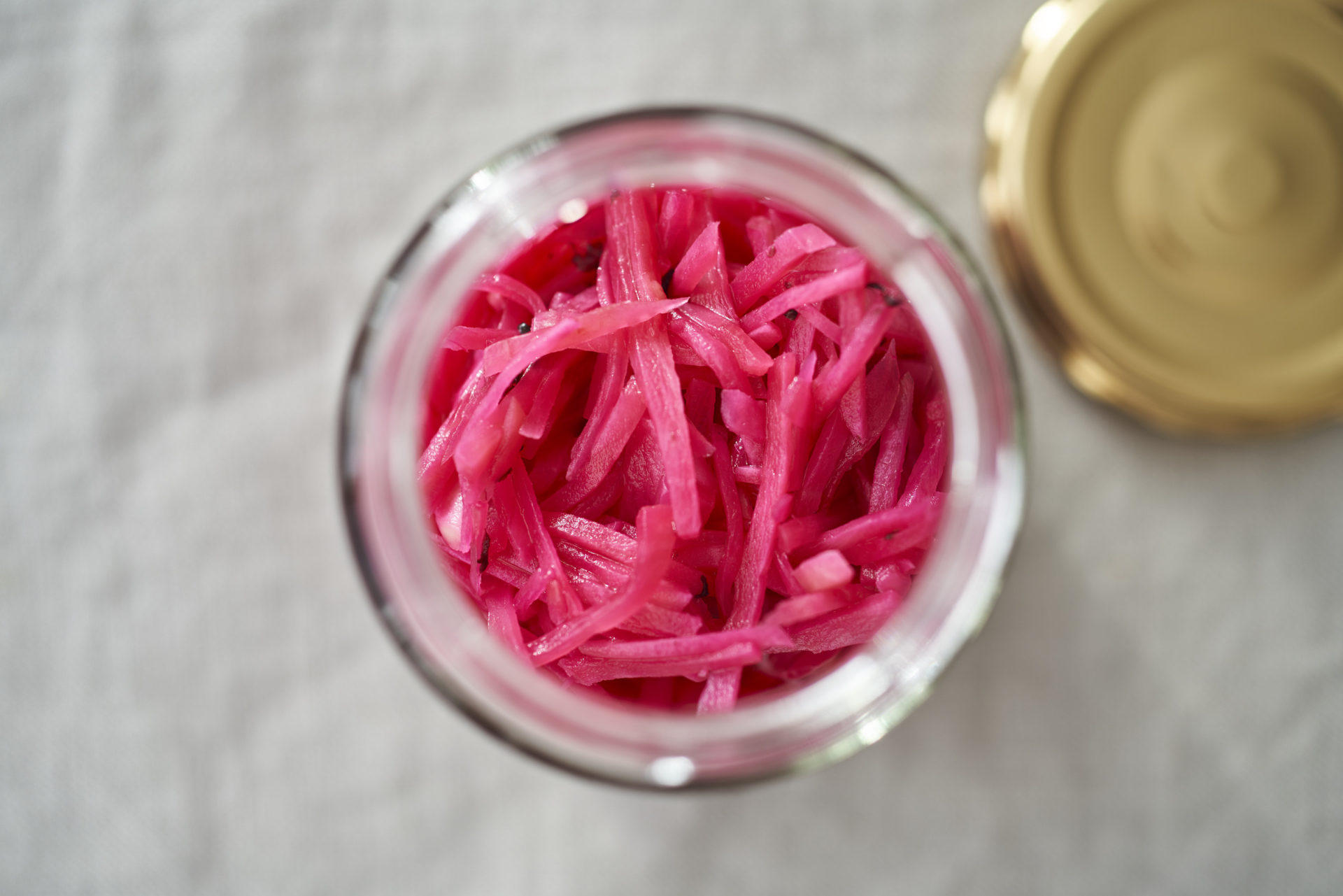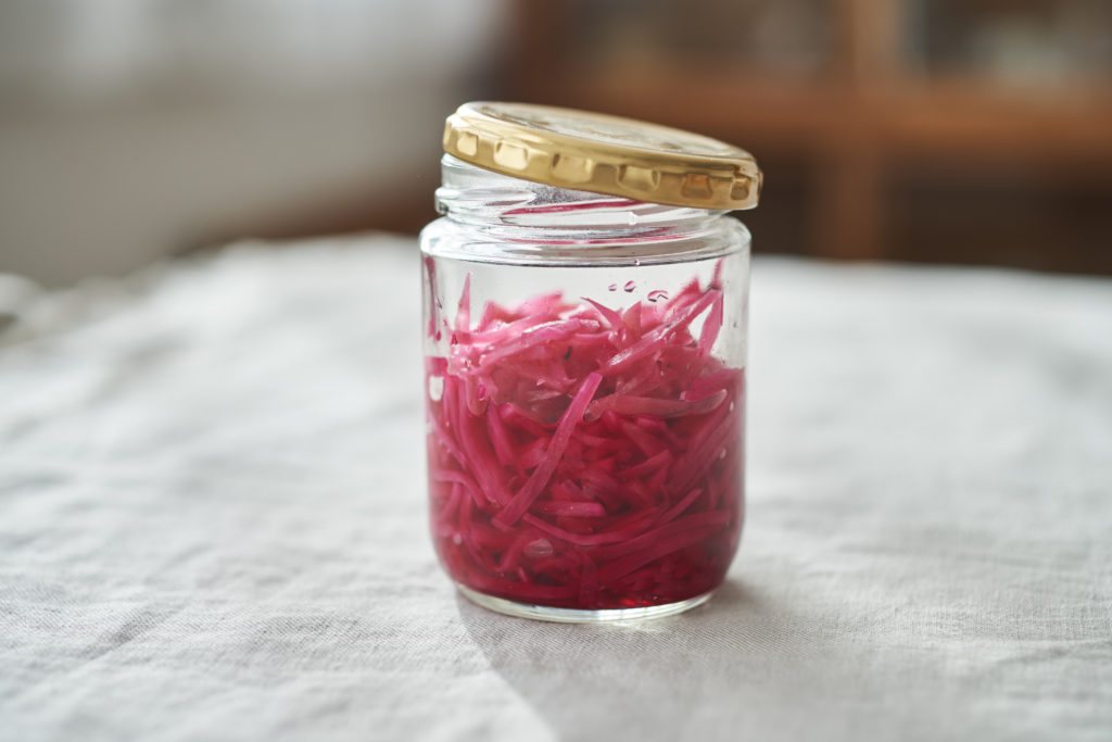材料2つ、新生姜、梅酢だけで作れる自家製紅生姜の作り方です。