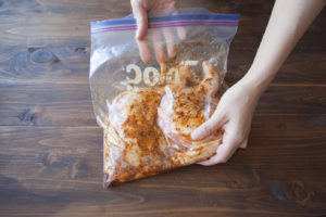 ジッパー付き保存袋に、(A)を入れて揉み込み、