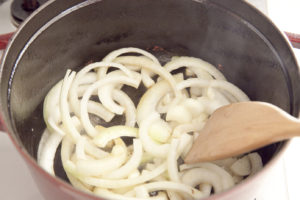 同じ鍋にバターを加え、中火にかけて玉ねぎを加え炒める。