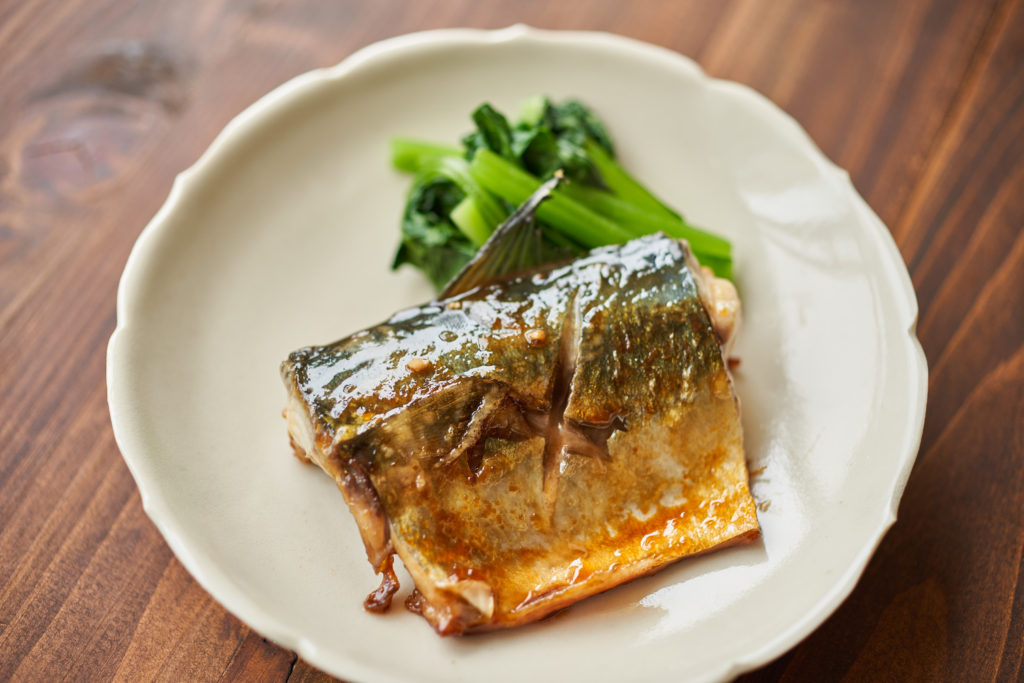 フライパンにサラダ油を中火で熱し、さばを皮目を下にして入れ、
