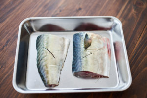 さばは皮目にX字に切り込みをいれて塩をふり、
