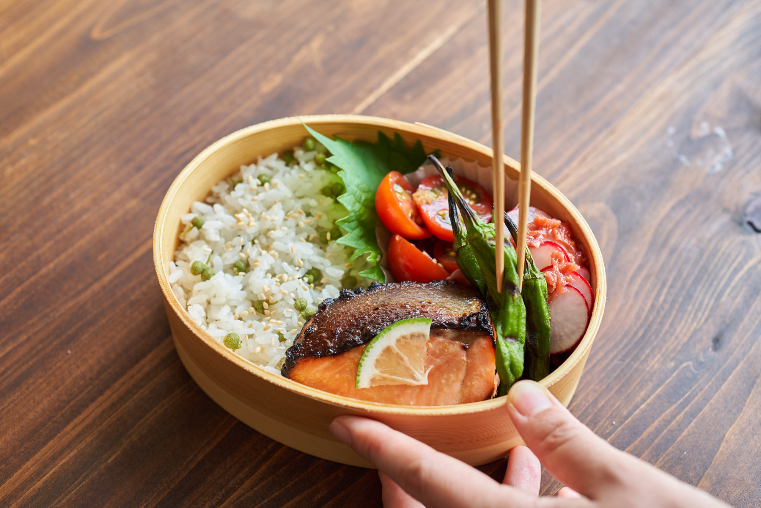 今回は、定番のお弁当、「鮭のみそ漬け焼き弁当」です。