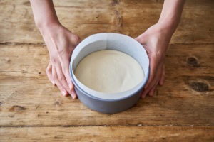 粉気が無くなったら型に注ぎ入れ、表面をきれいにならす。