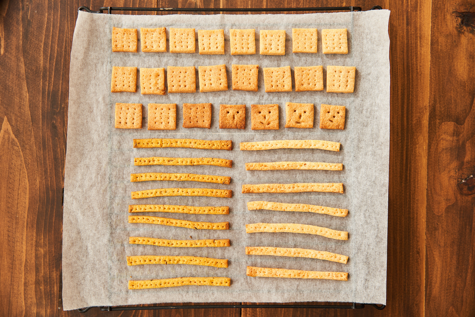 クラッカーはパルミジャーノチーズも加えます。カレー粉やクミンでアレンジするのもおすすめ◎