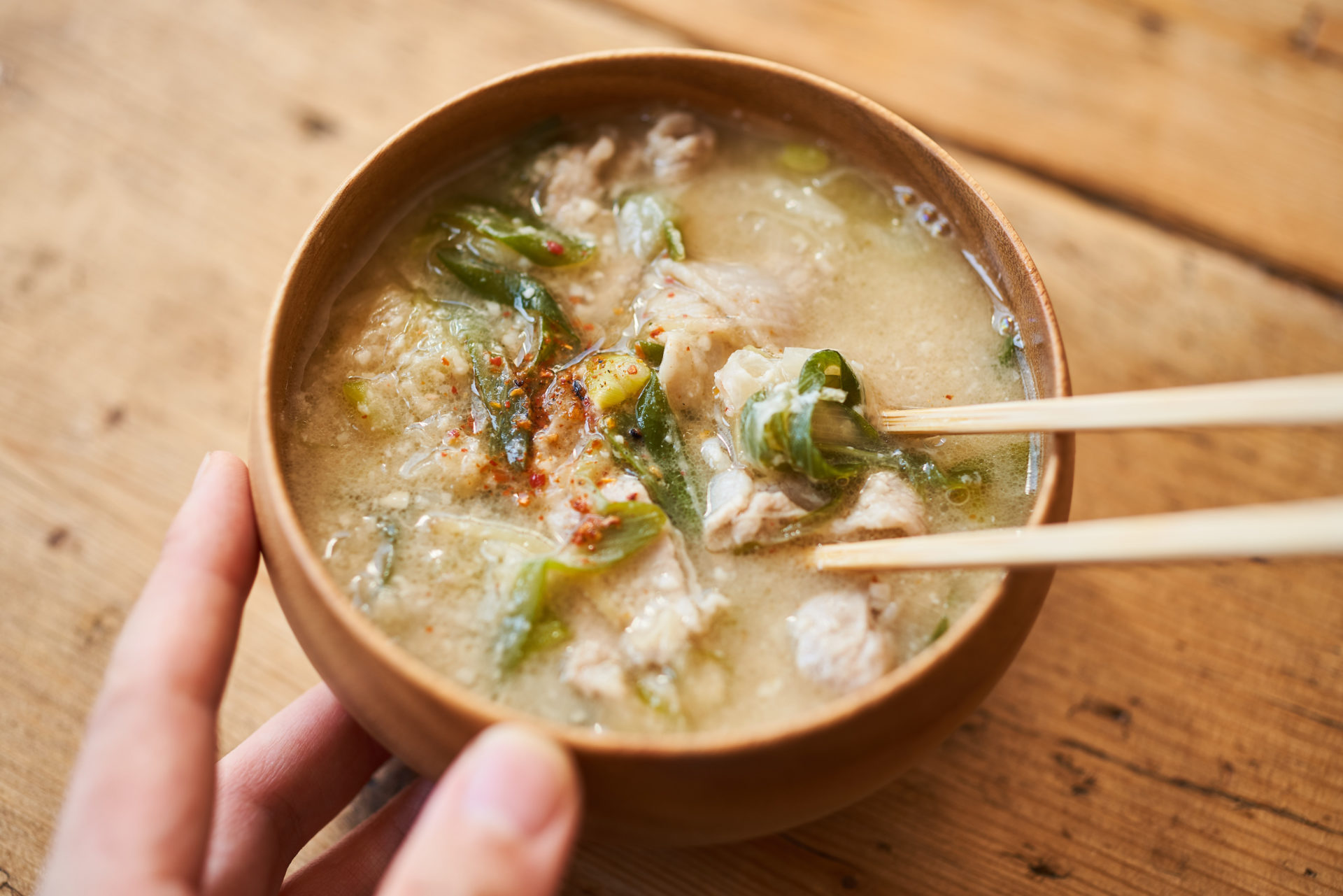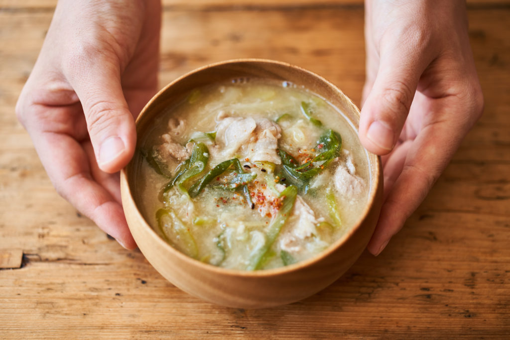 ねぎの甘みと豚肉のうまみで、食べやすく仕上がります。酒粕でとろりと、体が温まります。