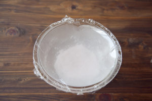 1のボウルにラップをふわりとかけなおし、電子レンジ600Wで2分加熱し、そのまま10分蒸らす。