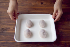 桜の葉の水気を切り、葉脈が浮いているほうを外側にして包む。