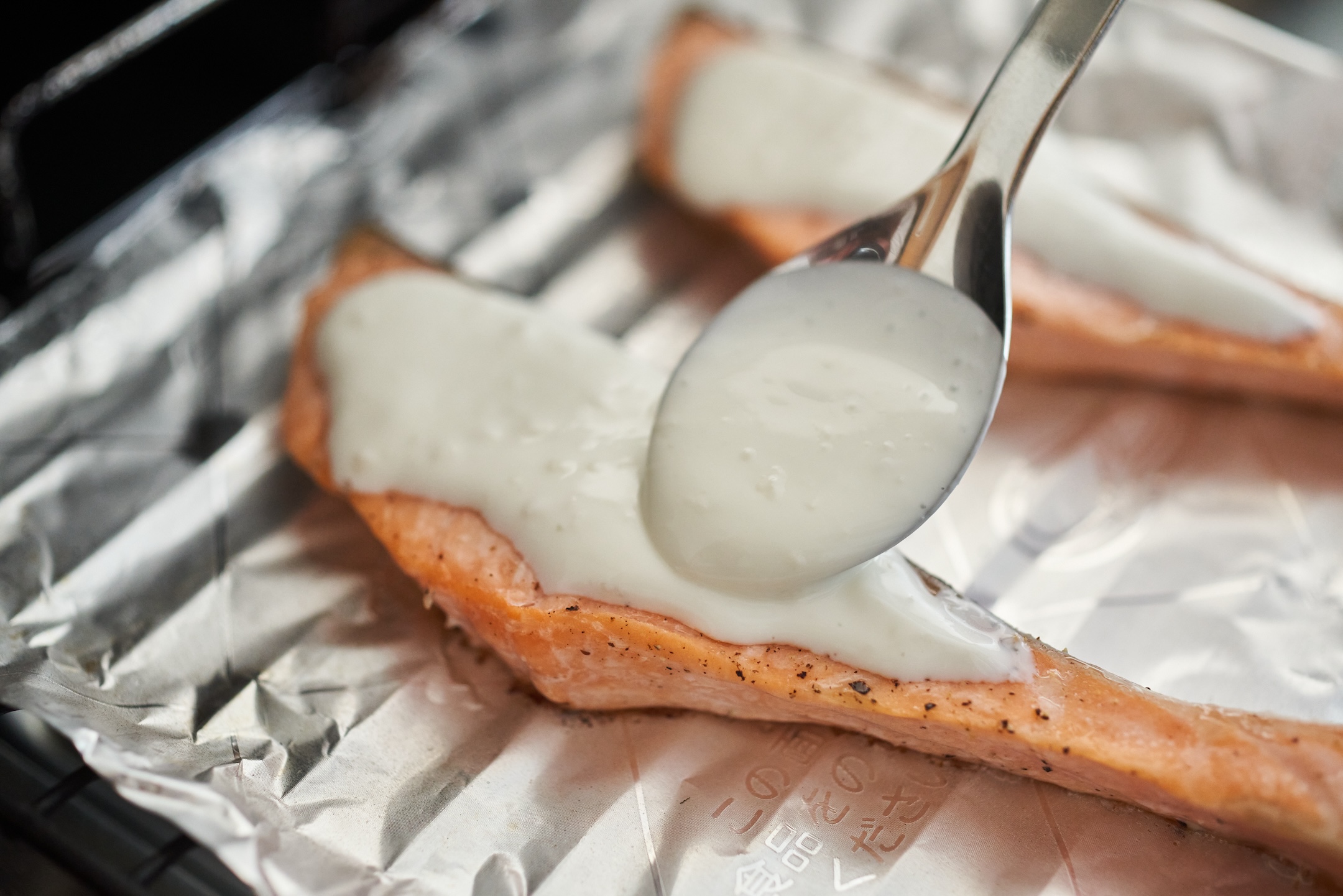 ヨーグルトを塗って焼くことで、サーモンがしっとり仕上がります!