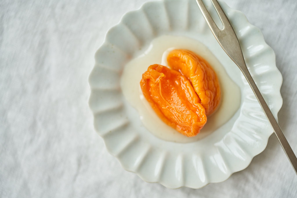 漬け汁は「塩はちみつあんずシロップ」に。炭酸水で割ってどうぞ。