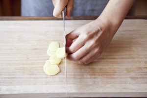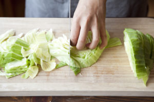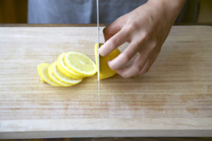 キャベツは一口大、レモンは輪切り、しょうがは皮を向いて薄切りにする。