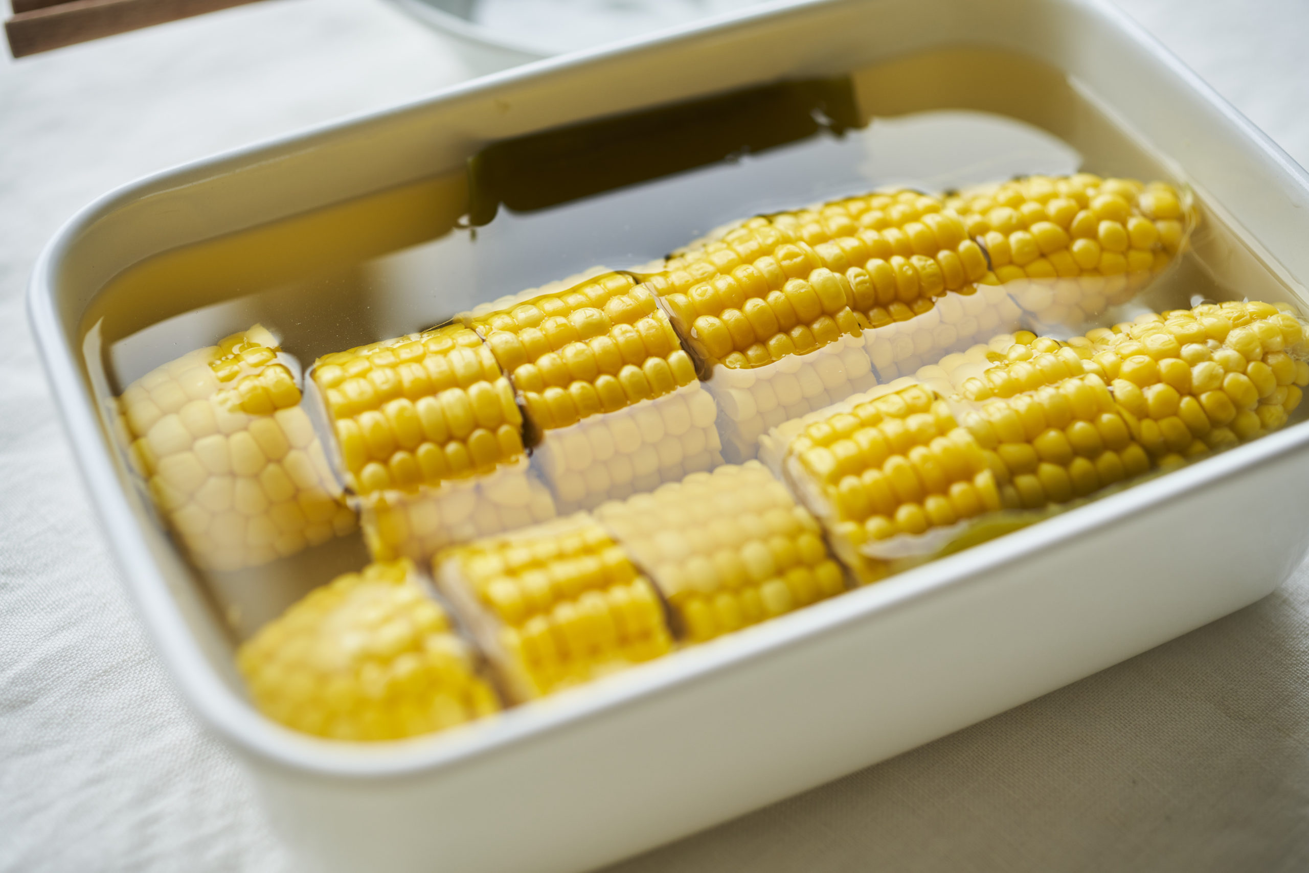 レンジで簡単!とうもろこしの塩水漬けの作り方です。