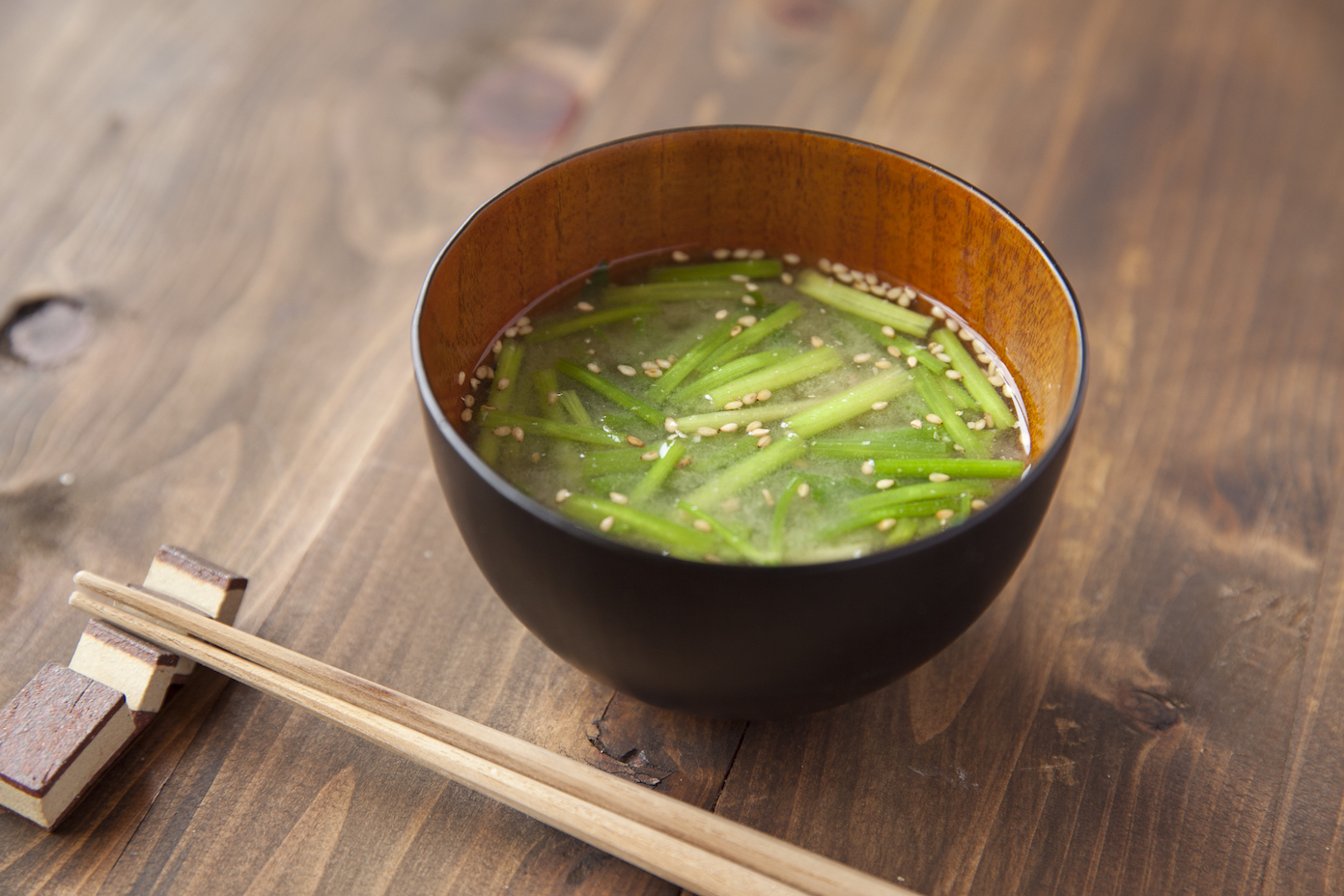 香りのよいせりとごまの香ばしさがマッチする、お味噌汁です。