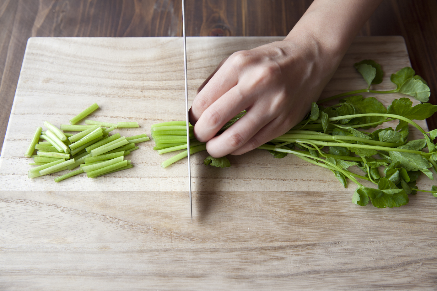 せりは長さ3cm程度に切る。
