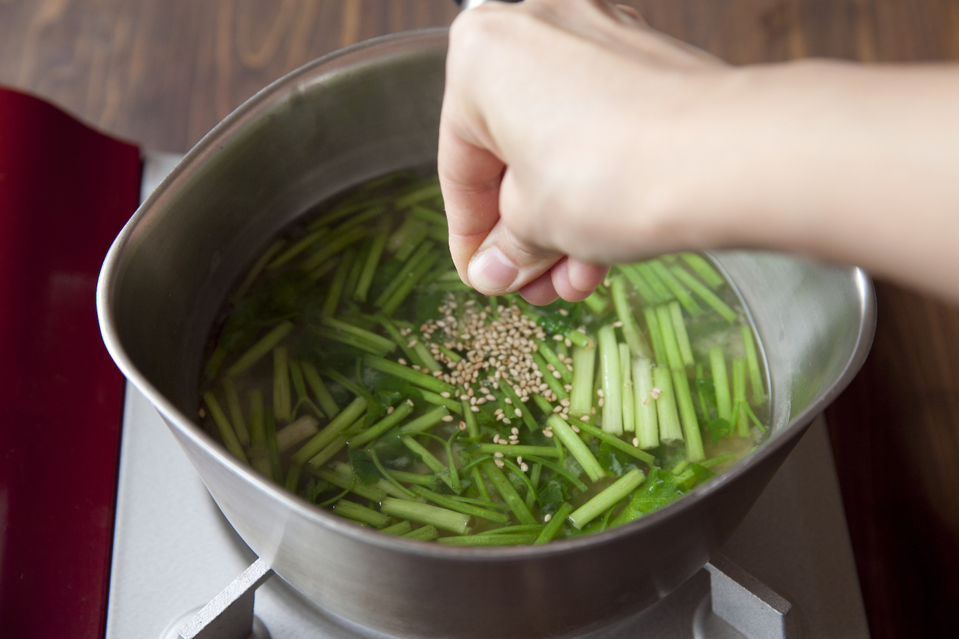・ごまは指で潰しながら加えることで、香りが引き立ちます。