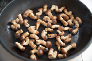 ベビーしいたけに焼き目がつくくらいにじっくり焼きながら炒めるのが、ポイント。