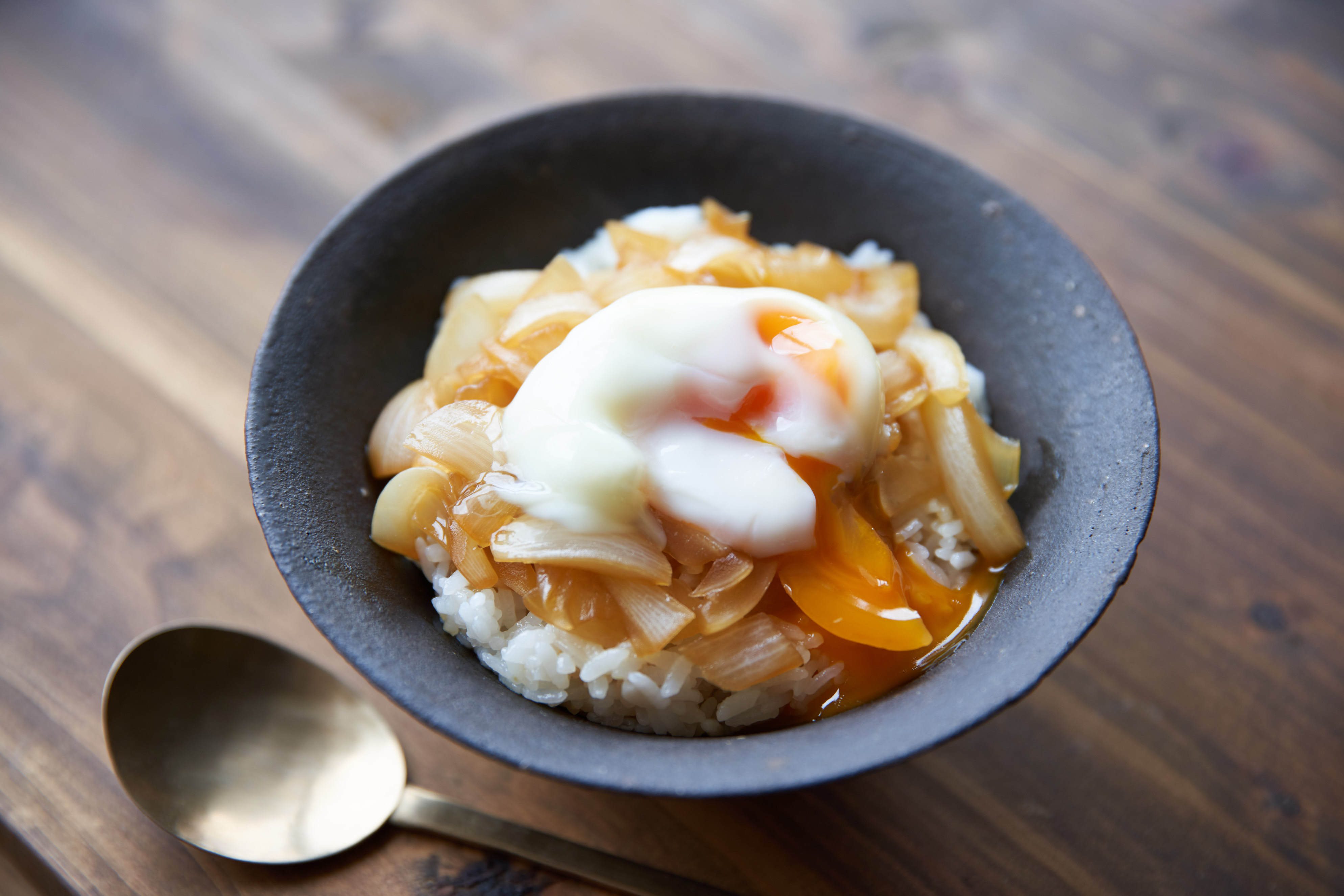 旬の新玉ねぎを甘辛くとろとろに煮て、ごはんにたっぷりかける丼「のっけごはん」の作り方です。朝ごはんやランチ、アウトドアにもおすすめです。