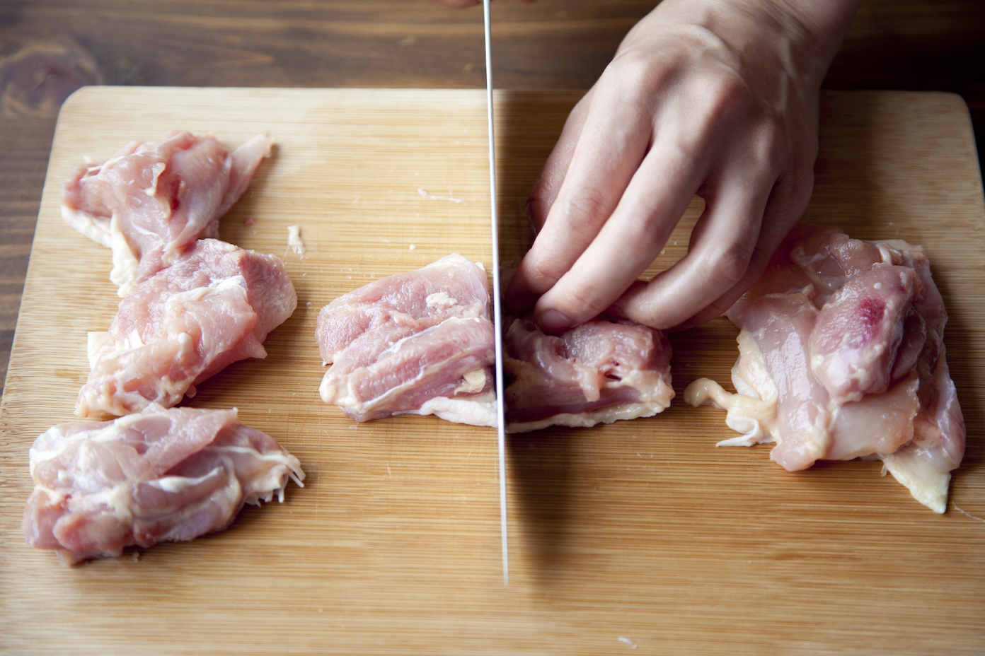 鶏もも肉は一口大に切り、(A)と合わせてジッパー付き保存袋にいれて揉み込み、30分以上(できれば一晩)おく。