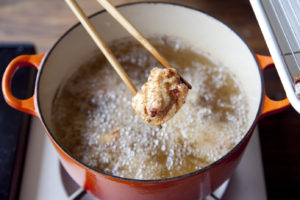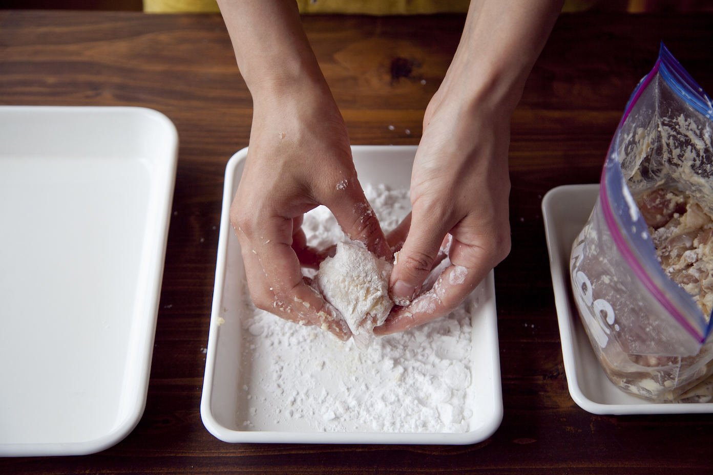 薄力粉を揉み込むことで、しっかり味を感じられる唐揚げに。