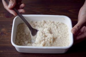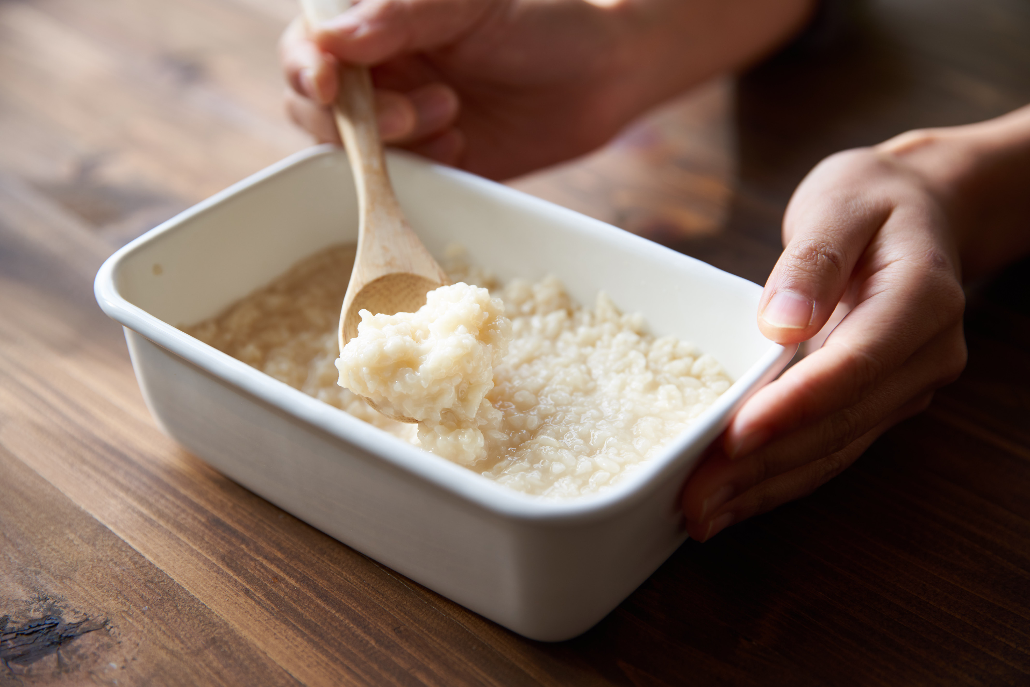 1日1回清潔なスプーンで混ぜて4日〜1週間程度、米麹が柔らかくなったら出来上がり。